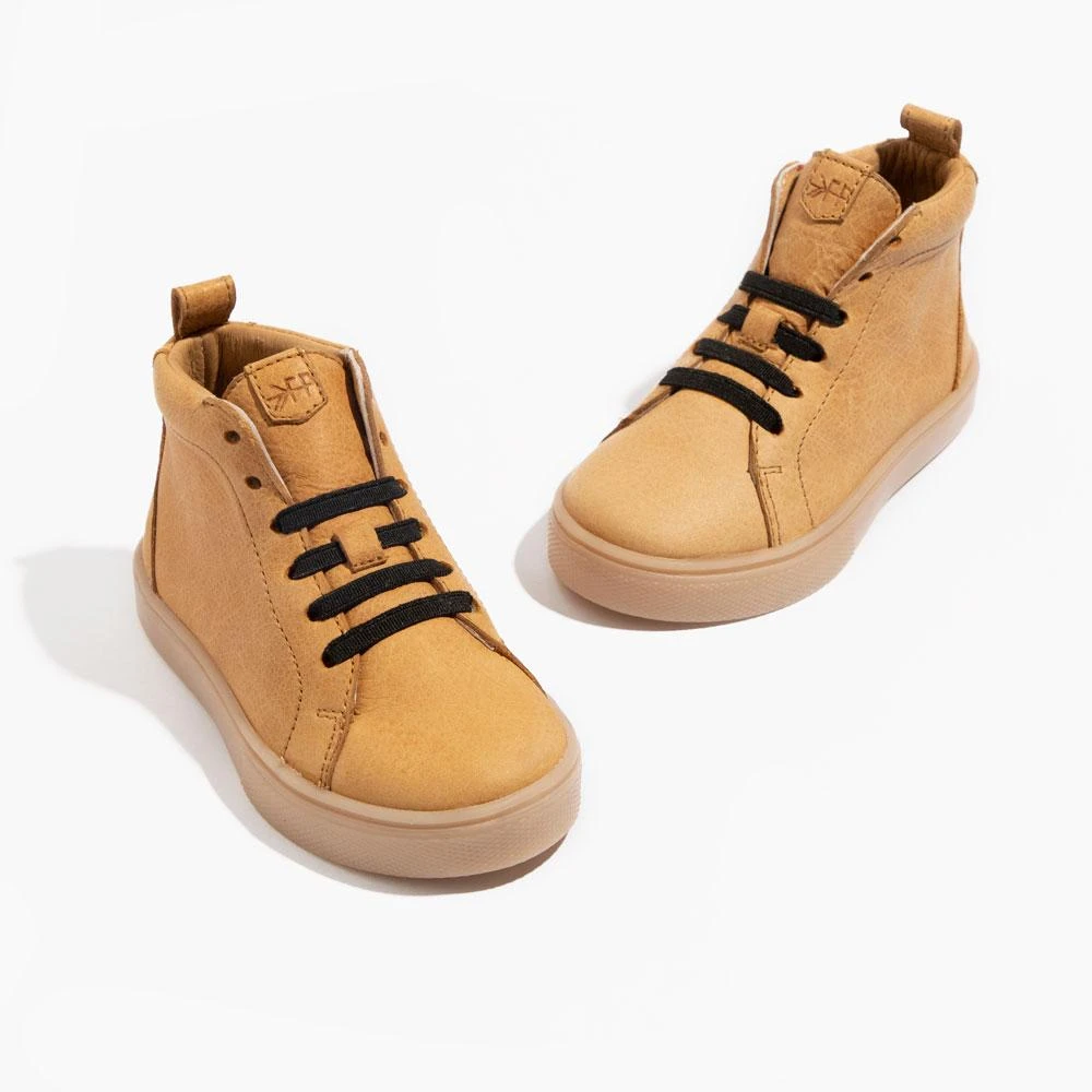 Our newest kid’s sneaker is an absolute must have! These adorable shoes come in our fan favorite genuine Beehive State leather. This neutral boot goes with everything featuring black elastic laces for an easy on/off experience perfect for growing toddlers complete with matching rubber soles ready for every adventure.