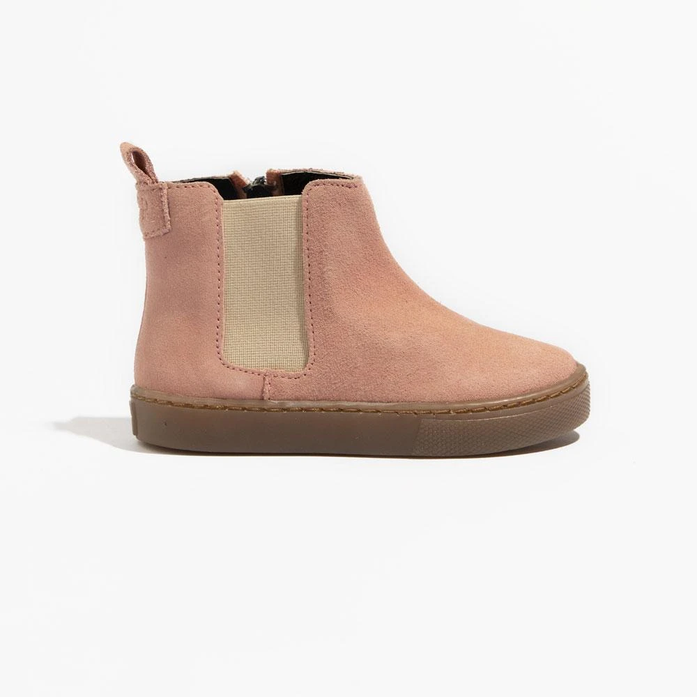 For the NEXT step in your kid’s life, slip into our brand-new Chelsea Boots! You asked for more chelsea boots and we listened! Introducing the Blush Suede Chelsea Boots made of our genuine suede leather and textured rubber soles. The boots include an elastic outer side and zippered inner for easy/off access that will stay on your babes foot. These are absolute must haves this fall!