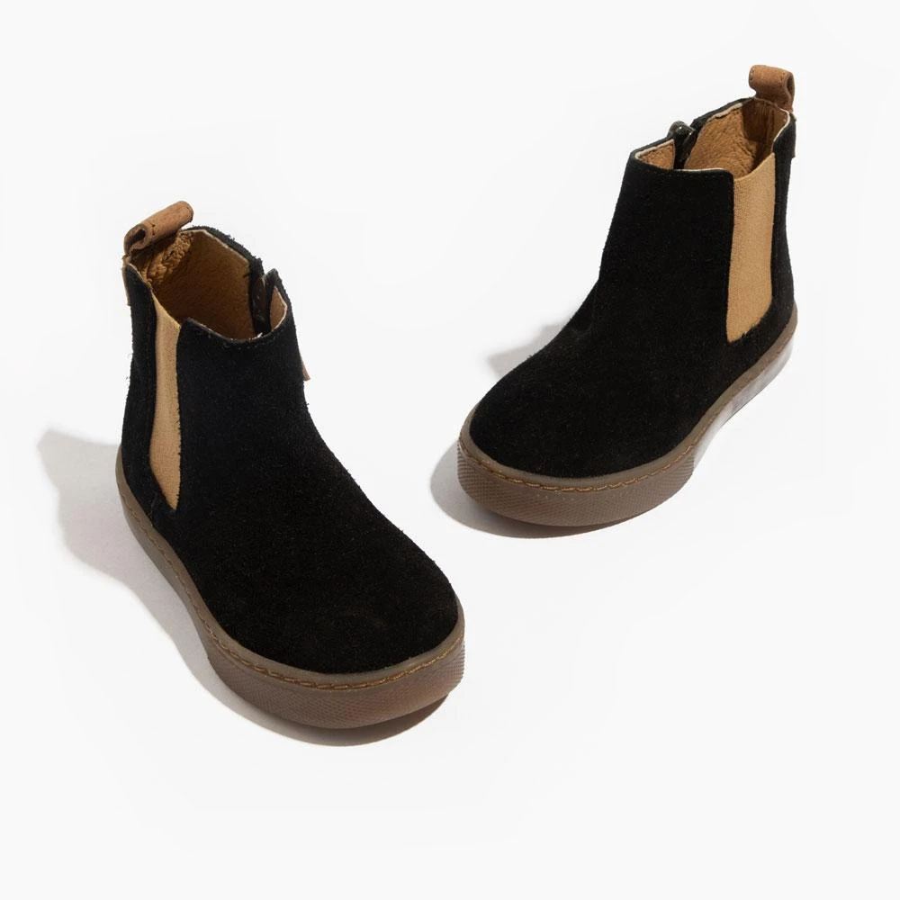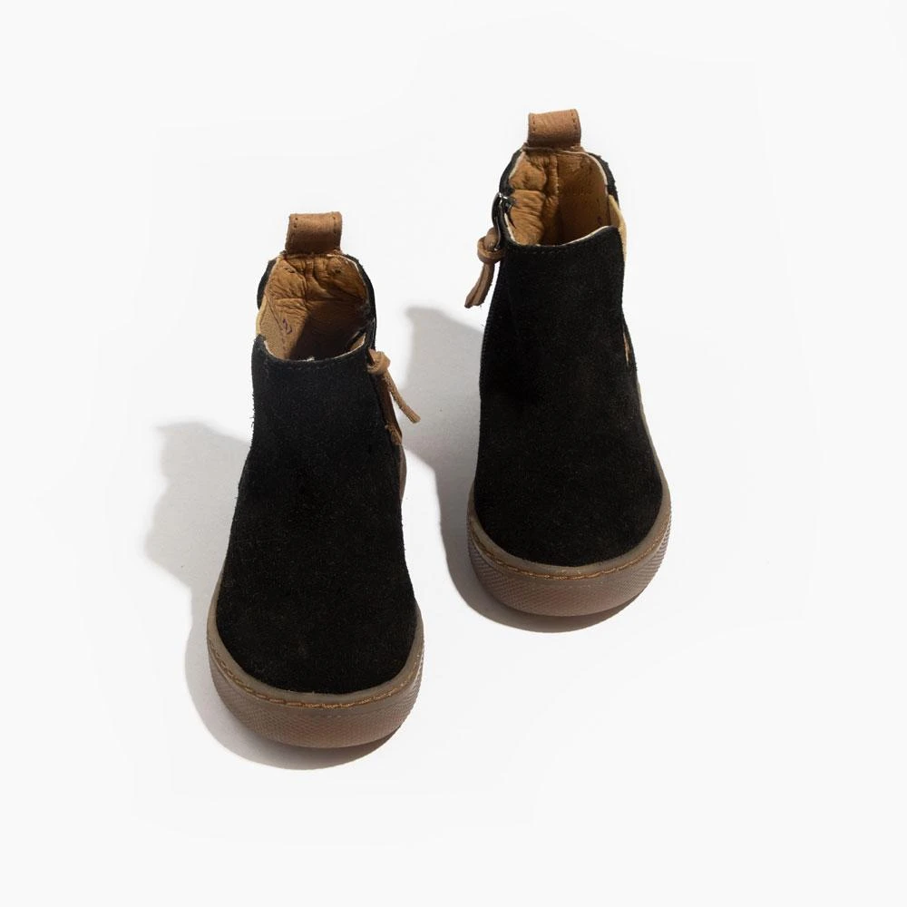For the NEXT step in your kid’s life, slip into our brand-new Chelsea Boots! You asked for more chelsea boots and we listened! Introducing Ebony Chelsea Boots made of our genuine suede leather and textured rubber soles. The boots include an elastic outer side and zippered inner for easy/off access that will stay on your babes foot. These are absolute must haves this fall!