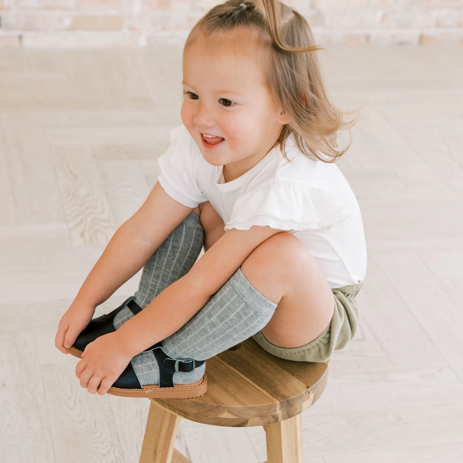 Comfy socks for your little one to slip on! Designed to match our best selling moccasins and any outfit. The ribbed detailing makes the pair super adorable and a must-have for your babe’s wardrobe.
