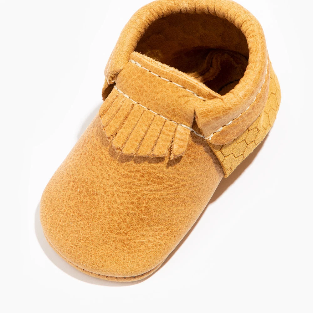 Handmade genuine leather moccs for your little walker! Shoes that stay on their tiny feet.