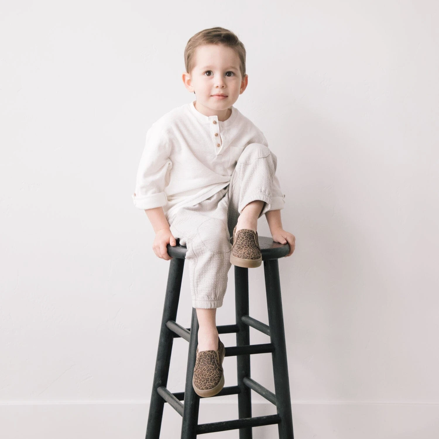 For the NEXT step in your kid’s life, slip into our brand-new Slip-On Sneakers! Textured rubber soles, a back pull tab, and stretchy elastic openings for an easy-on and off experience. There won’t be any slipping and sliding in these puppies!