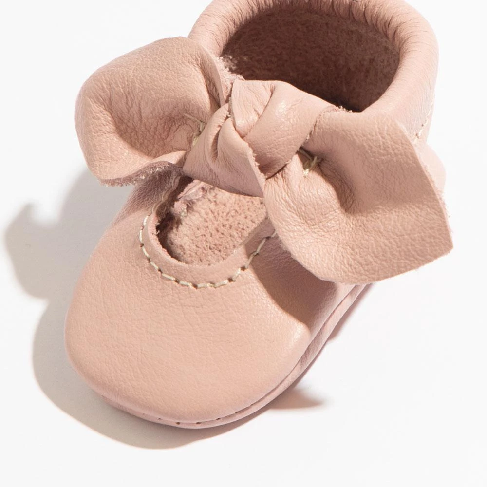 Introducing our newest Knotted Bow Moccasins! These adorable genuine leather moccs come in our blush toned leather. These buttery soft moccs are accented by the cutest knotted leather bow and durable leather soles.