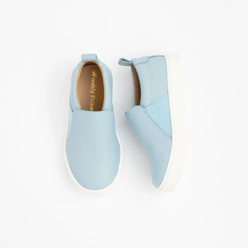 For the NEXT step in your kid’s life, slip into our brand-new Slip-On Sneakers! Made of our Powder Blue genuine leather inside and out, textured rubber soles, a back pull tab, and stretchy elastic openings for an easy-on and off experience. There won’t be any slipping and sliding in these puppies!